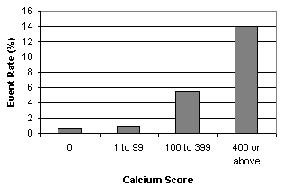 The graphic below shows the marked increase in risk with rising calcium scores.